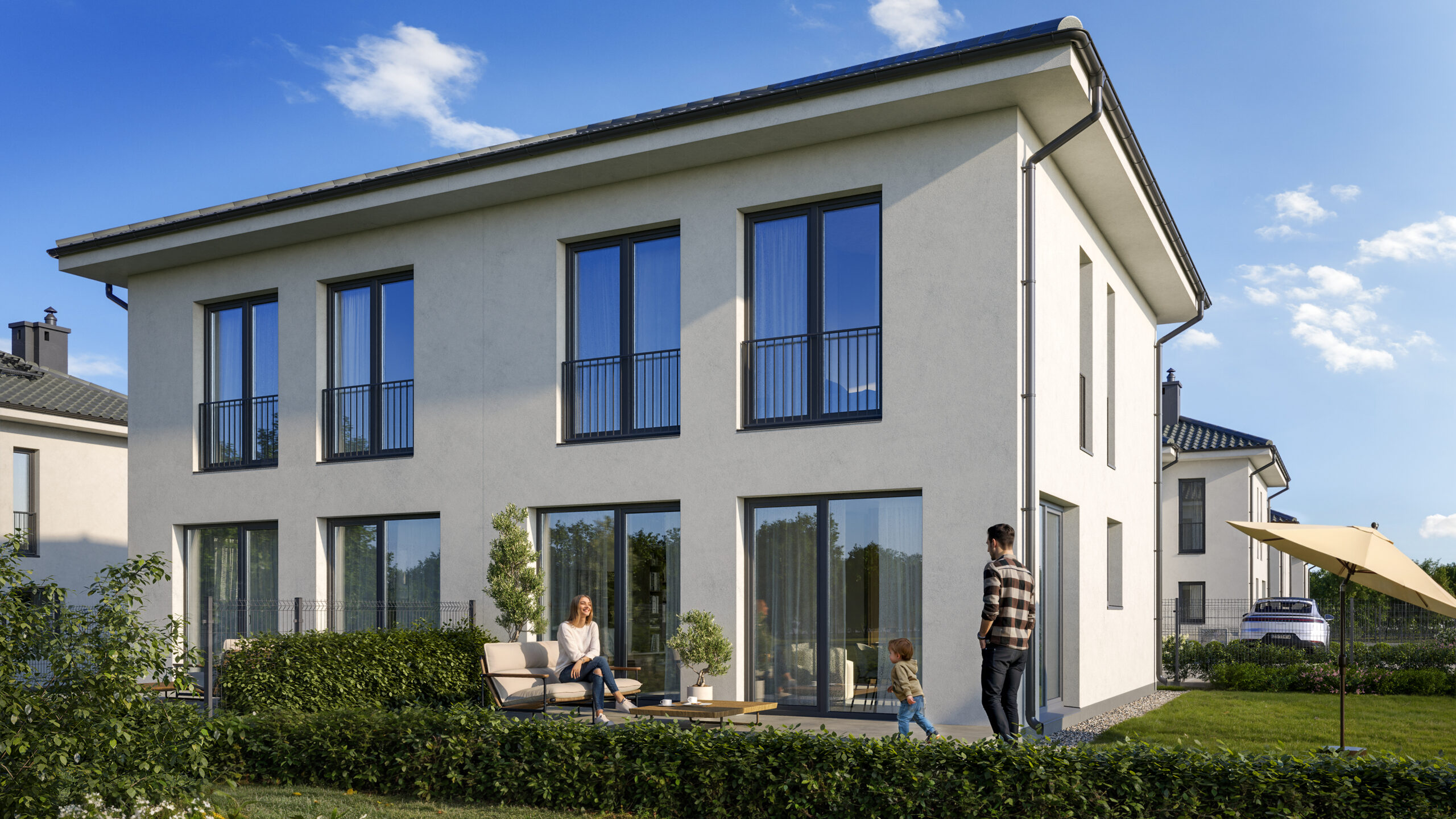 Bianco Residence to unikalne połączenie nowoczesnej architektury, solidnego rzemiosła budowlanego oraz spokoju, jakiego szukasz dla swojej rodziny. Kameralna inwestycja obejmuje budynek mieszkalny składający się z dwóch komfortowych, dwukondygnacyjnych lokali, harmonijnie wpisujących się w podmiejski krajobraz Mierzyna.